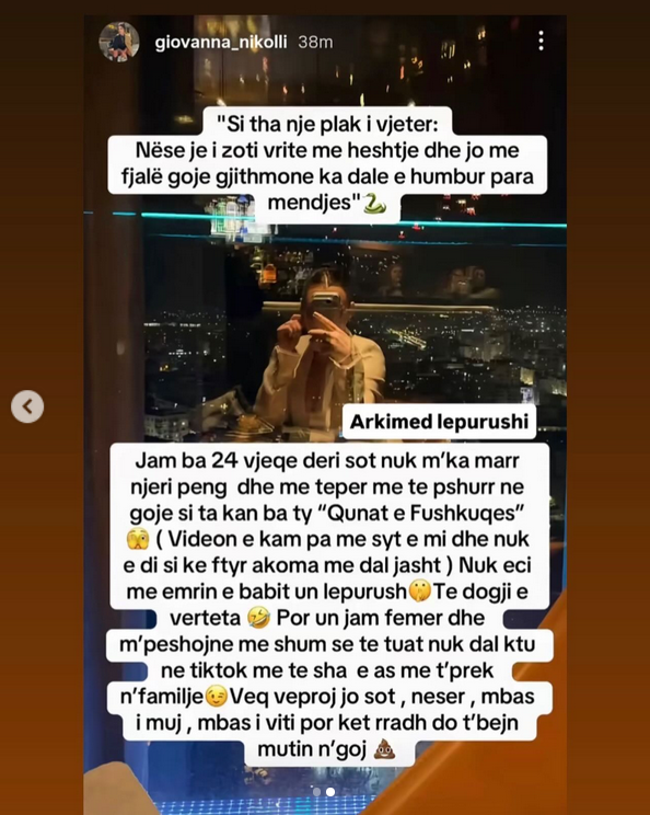 Një përballje e re virtuale ka marrë vëmendjen në rrjetet sociale, këtë herë mes Stresi dhe Xhovana Nikolli. Kjo e fundit ka reaguar përmes një postimi në Instagram, ku ka përdorur tone të forta dhe ironi të drejtpërdrejtë ndaj reperit, duke risjellë në vëmendje edhe episode nga e kaluara.